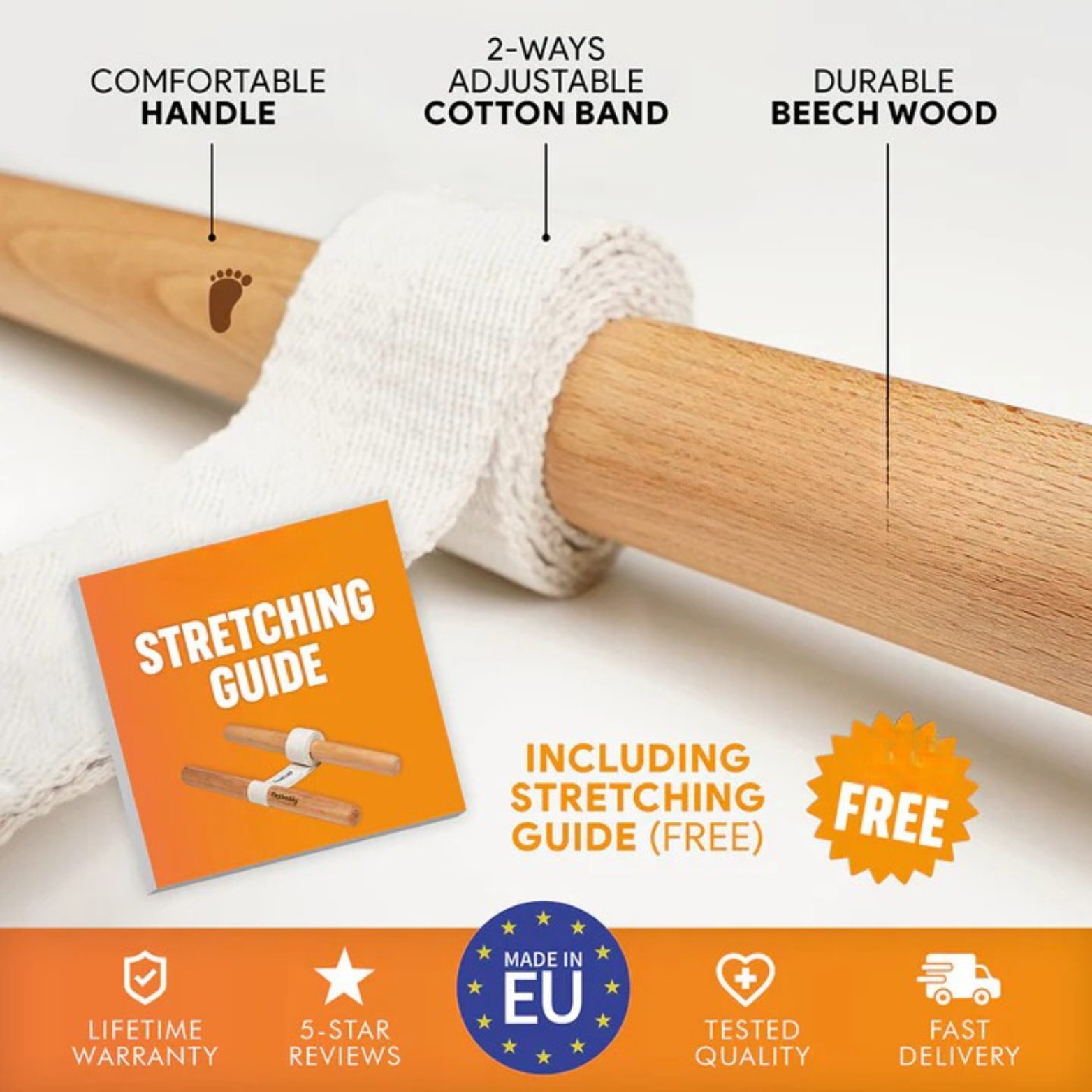 Stretching relaxes your body, so you can say goodbye to back pain, knee pain & overall stiffness.No time? No problem! Only 2 minutes a day can improve your flexibility & posture.Knowledge or abilities required: zero! Made for everybody and any body.